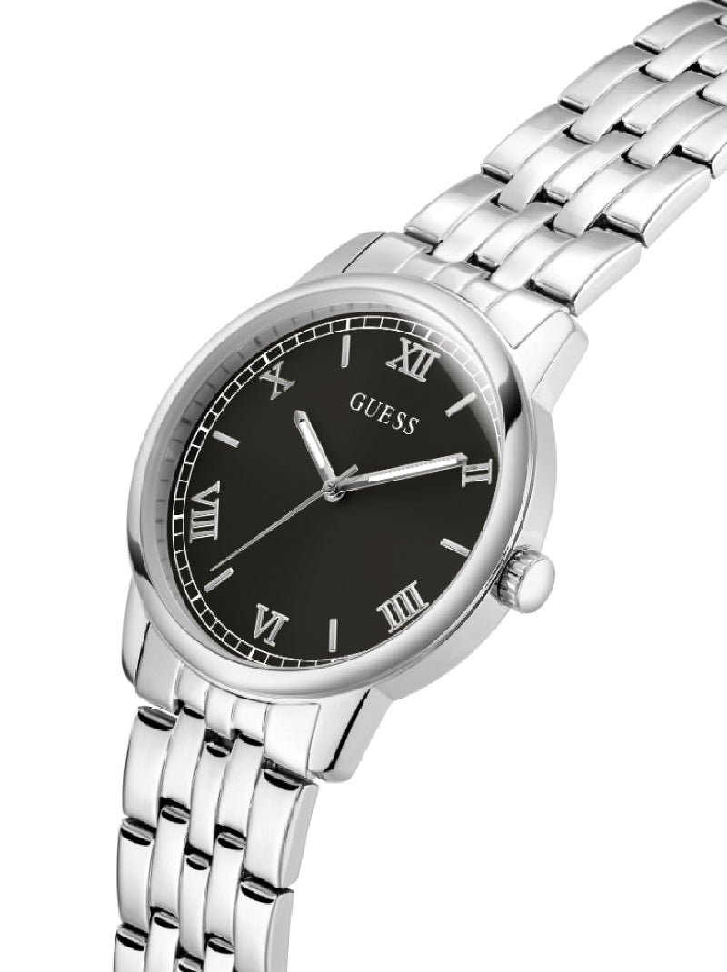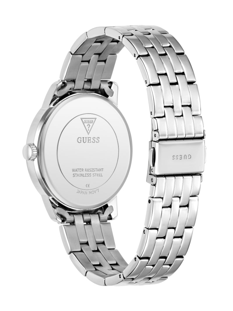 นาฬิกาข้อมือผู้ชาย Guess รุ่น Chandler ถ่ายทอดดีไซน์เรียบเท่และสุภาพ ตัวเรือนและสายสแตนเลสคุณภาพดี ให้ลุคที่ดูสมาร์ตและคลาสสิก ขนาดหน้าปัด 40 มม. สวมใส่ได้อย่างพอดี ขับเคลื่อนด้วยระบบอนาล็อก เหมาะสำหรับการใช้งานในชีวิตประจำวันหรือโอกาสทางการ ช่วยเสริมบุคลิกให้ดูมั่นใจและมีสไตล์อย่างเป็นธรรมชาติ