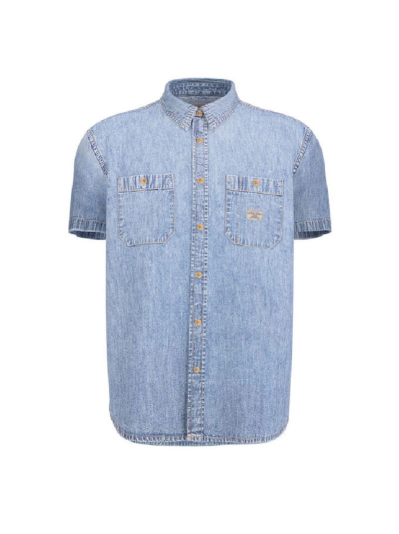 เสื้อยีนส์ผู้ชาย Guess Short-sleeved Denim Shirt Indigo