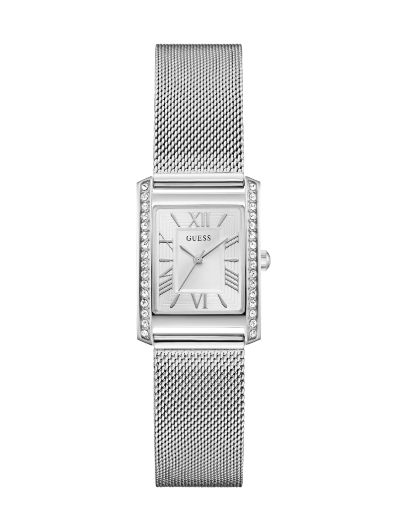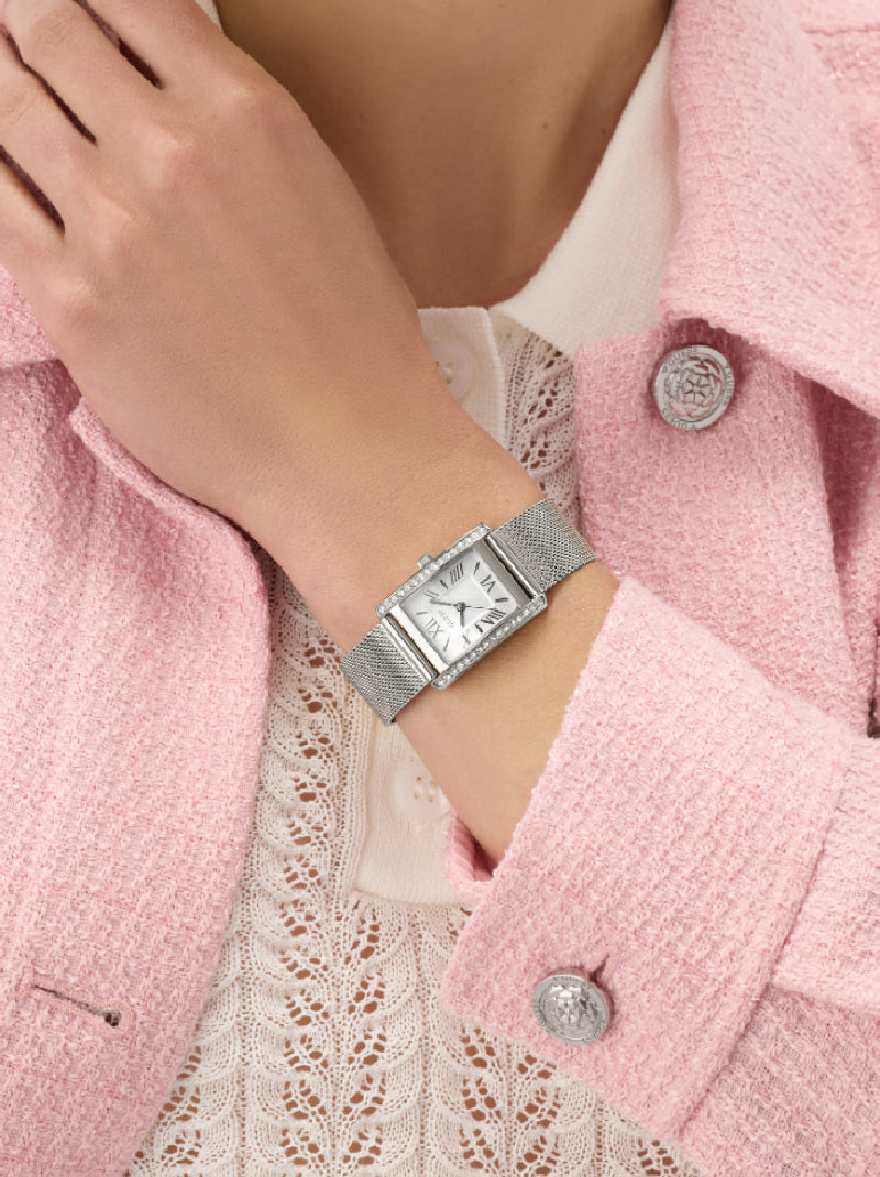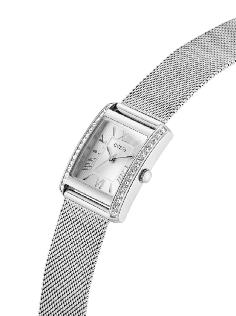 นาฬิกาข้อมือผู้หญิง Guess รุ่น Bonnet โดดเด่นด้วยตัวเรือนขนาดเล็ก 23 มม. ที่ให้ความรู้สึกอ่อนหวานและประณีต เหมาะสำหรับผู้หญิงที่ชอบความเรียบง่ายแบบมีสไตล์ ดีไซน์มินิมอลที่ทันสมัยช่วยเสริมลุคให้ดูสุภาพหรูในทุกวัน กลไก Analog ทำงานแม่นยำ สวมใส่ได้อย่างมั่นใจ ไม่ว่าจะเป็นการทำงานหรือโอกาสพิเศษ เรือนนี้คือเครื่องประดับที่ช่วยเติมเต็มความสง่างามอย่างพอดีบนข้อมือ