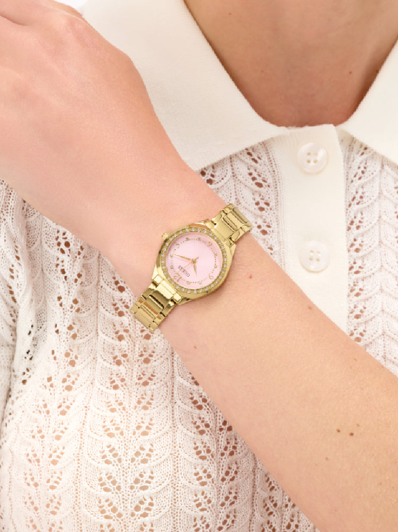 นาฬิกาข้อมือผู้หญิง Guess รุ่น Charlotte ถ่ายทอดเสน่ห์แบบผู้หญิงอย่างสง่างามด้วยตัวเรือนขนาด 30 มม. ที่สวมใส่ง่ายและเข้ากับทุกสไตล์ การออกแบบเรียบหรูและดูทันสมัยทำให้เรือนนี้เป็นไอเท็มที่เหมาะกับทุกโอกาส ตั้งแต่วันทำงานจนถึงกิจกรรมพิเศษ กลไก Analog ให้ความเที่ยงตรงและเชื่อถือได้ เพิ่มความมั่นใจในทุกย่างก้าว นาฬิกาเรือนนี้คือสัมผัสของความคลาสสิกที่เติมเต็มลุคให้ดูสมบูรณ์แบบอย่างเป็นธรรมชาติ
