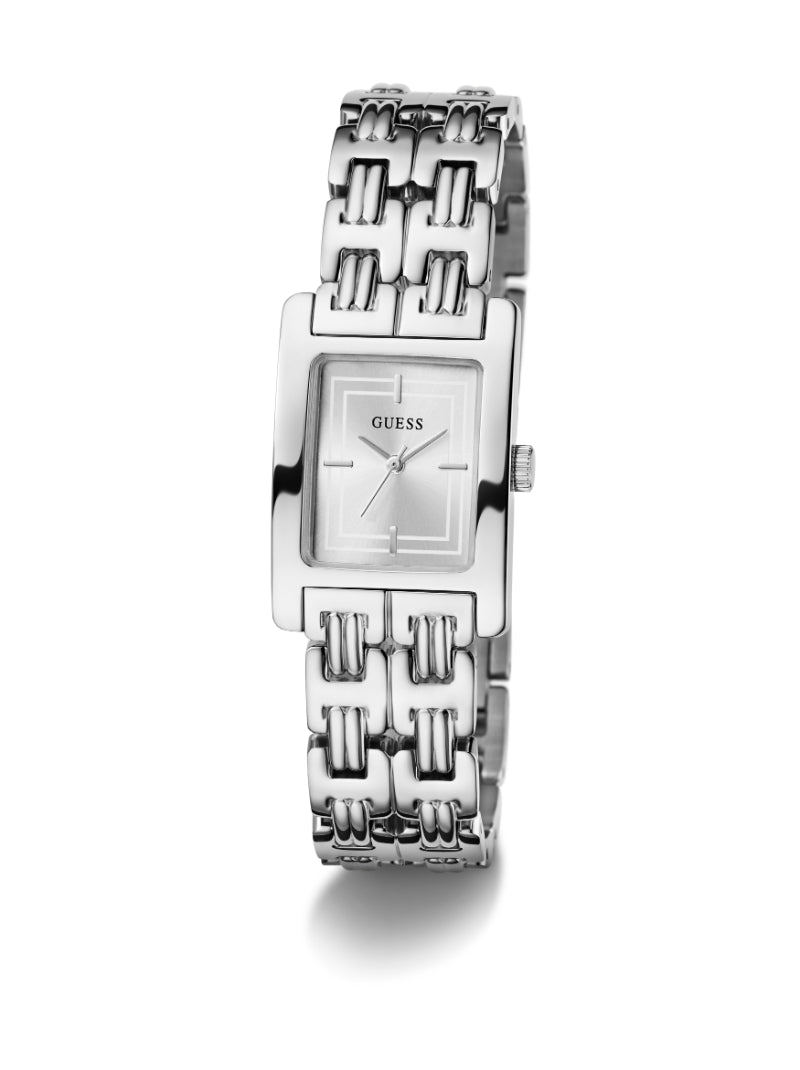 นาฬิกาข้อมือผู้หญิง Guess รุ่น Cove มาพร้อมดีไซน์เรียบหรูและสุภาพ ตัวเรือนและสายสแตนเลสคุณภาพดี ให้ภาพลักษณ์ที่ดูสะอาดตาและคลาสสิก ขนาดหน้าปัด 23 มม. เหมาะกับข้อมือผู้หญิง ขับเคลื่อนด้วยระบบอนาล็อก เหมาะสำหรับการสวมใส่ในชีวิตประจำวันหรือโอกาสพิเศษ ช่วยเสริมลุคให้ดูอ่อนโยนและมีสไตล์อย่างลงตัว