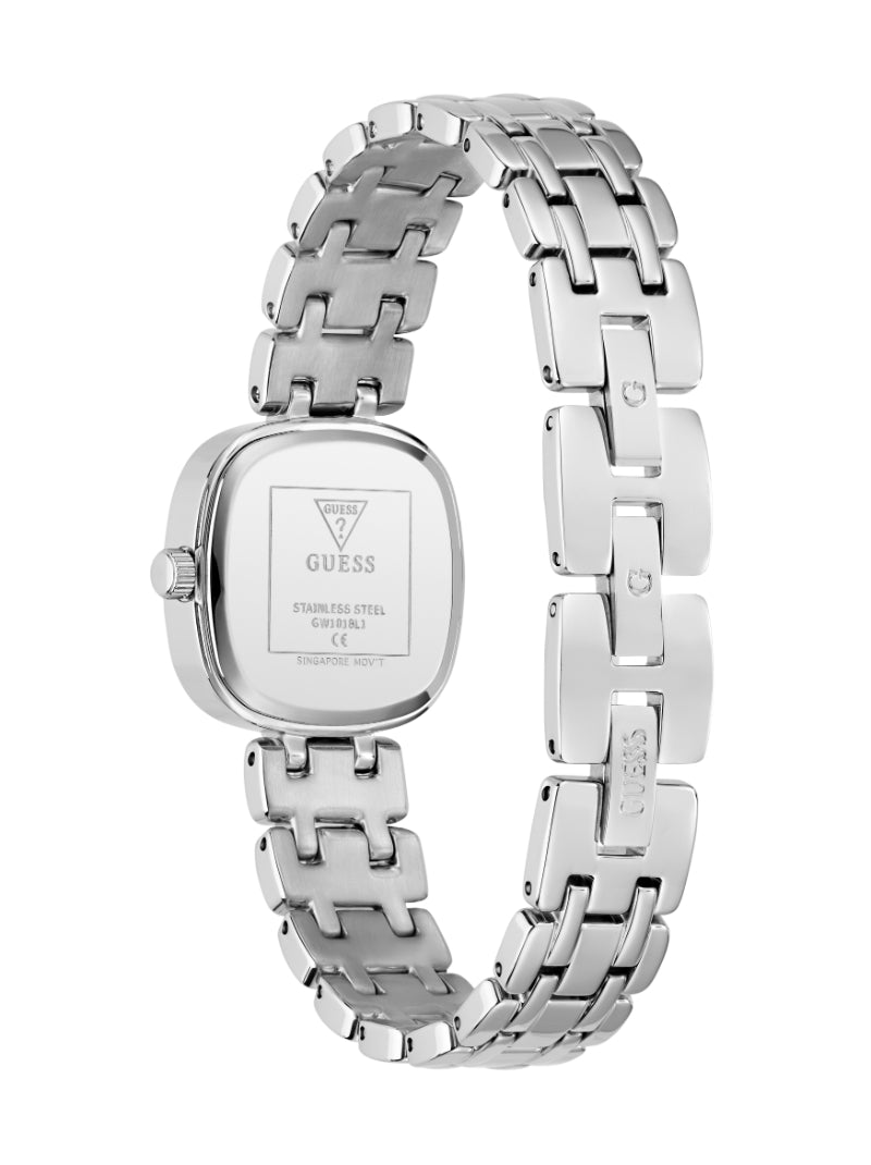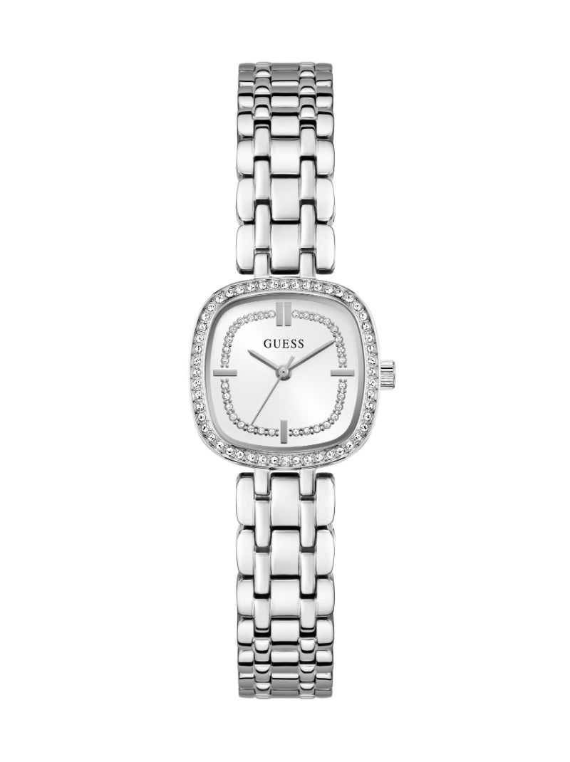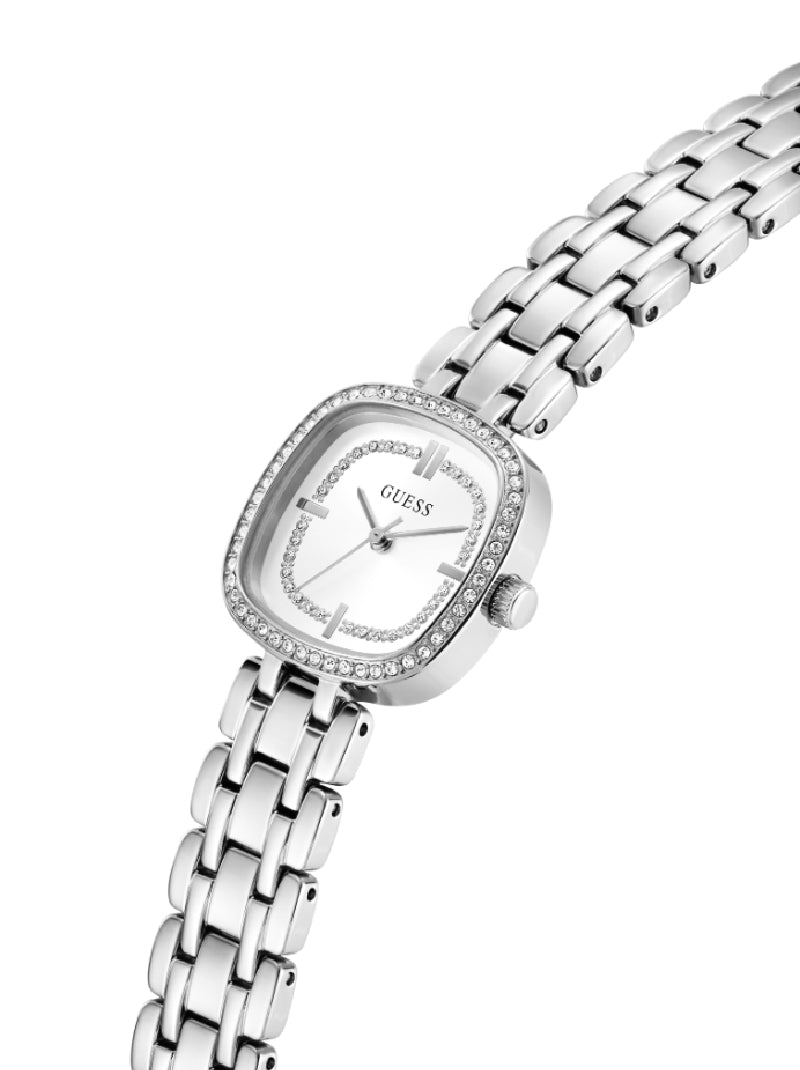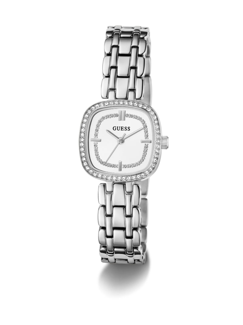 นาฬิกาข้อมือผู้หญิง Guess รุ่น Hazel โดดเด่นด้วยดีไซน์เรียบหรู ดูสะอาดตา ตัวเรือนและสายสแตนเลสคุณภาพดี สวมใส่สบาย ขนาดหน้าปัด 25 มม. เหมาะกับข้อมือผู้หญิง ขับเคลื่อนด้วยระบบอนาล็อก เหมาะสำหรับการใช้งานในชีวิตประจำวันหรือโอกาสพิเศษ ช่วยเสริมลุคให้ดูสุภาพและมีสไตล์อย่างลงตัว