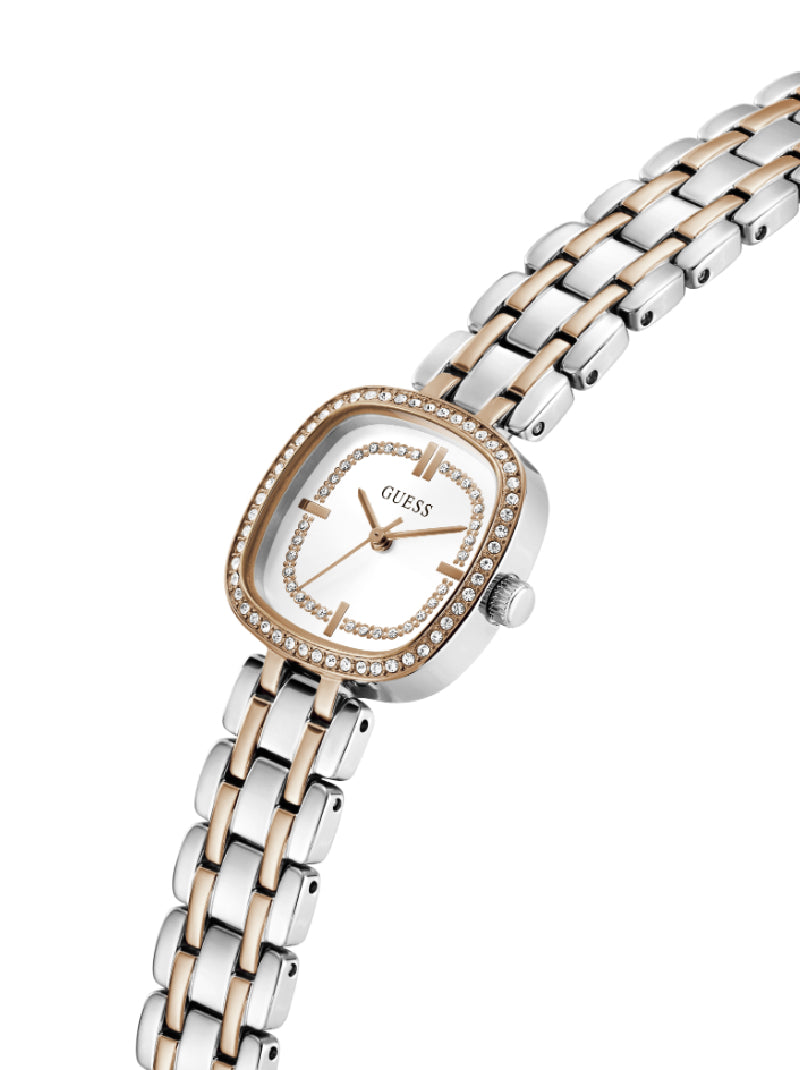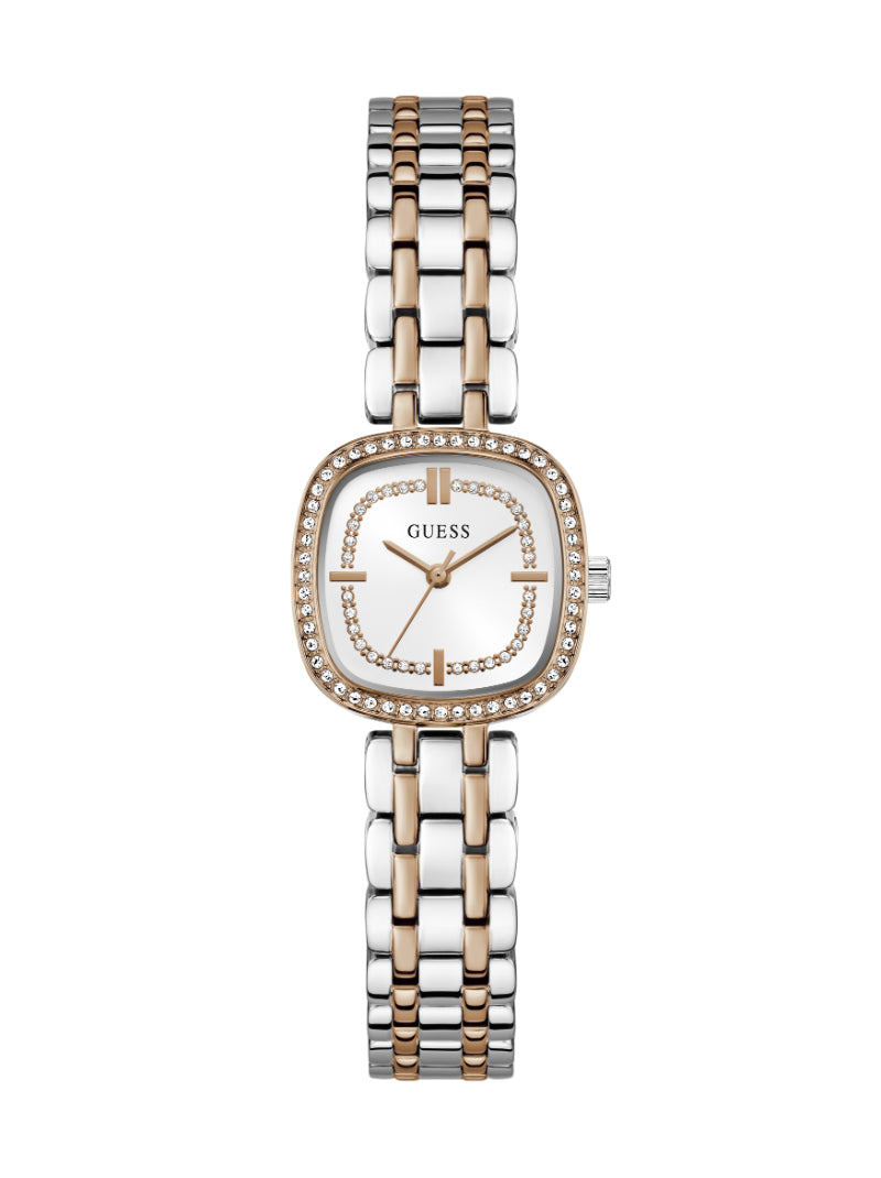 นาฬิกาข้อมือผู้หญิง Guess รุ่น Hazel โดดเด่นด้วยดีไซน์เรียบหรู ดูสะอาดตา ตัวเรือนและสายสแตนเลสคุณภาพดี สวมใส่สบาย ขนาดหน้าปัด 25 มม. เหมาะกับข้อมือผู้หญิง ขับเคลื่อนด้วยระบบอนาล็อก เหมาะสำหรับการใช้งานในชีวิตประจำวันหรือโอกาสพิเศษ ช่วยเสริมลุคให้ดูสุภาพและมีสไตล์อย่างลงตัว