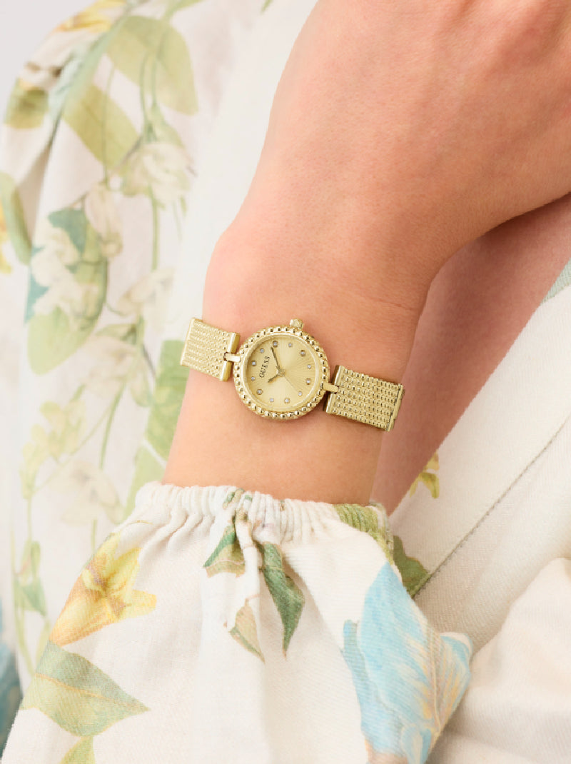 นาฬิกาข้อมือผู้หญิง Holly ดีไซน์เรียบหรูเหนือกาลเวลา มาพร้อมตัวเรือนและสายสแตนเลสคุณภาพดี หน้าปัดดูสะอาดตา ขนาดหน้าปัด 24 มม. กำลังพอดีกับข้อมือผู้หญิง ขับเคลื่อนด้วยระบบอนาล็อก เหมาะสำหรับการสวมใส่ในชีวิตประจำวันหรือโอกาสพิเศษ ช่วยเสริมลุคให้ดูสุภาพ ทันสมัย และมีเสน่ห์อย่างเป็นธรรมชาติ