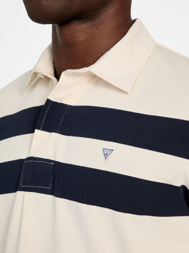 ● ดีไซน์แถบลายทางด้านบน พร้อมปะโลโก้สามเหลี่ยมที่หน้าอก