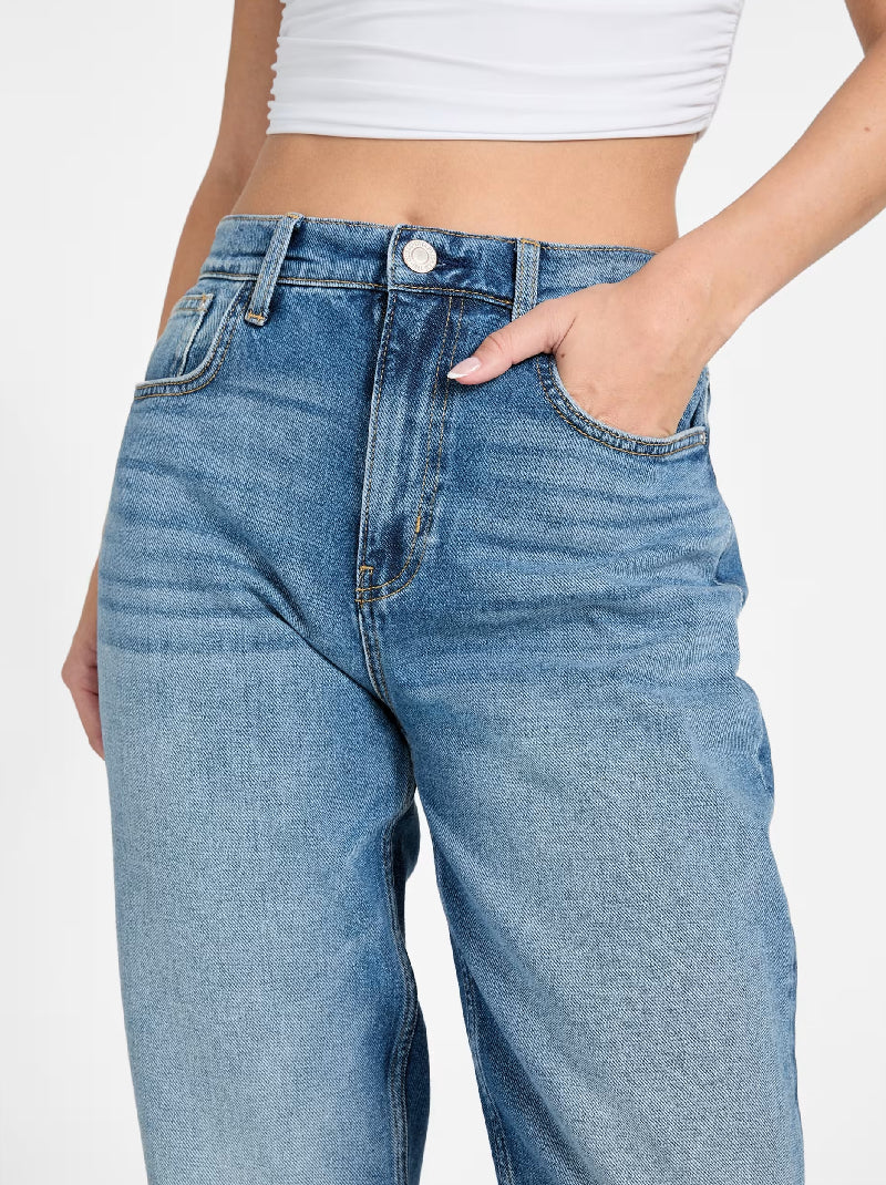 กางเกงยีนส์ New Mom Jeans สีน้ำเงินจาก GUESS ที่ตอบโจทย์ทั้งความคลาสสิกและความสบาย ด้วยเอวระดับกลางและทรงตรงที่ช่วยให้ขาดูเรียวยาวอย่างเป็นธรรมชาติ ตัดเย็บจากผ้ายีนส์ยืดคุณภาพดี ใส่สบายตลอดวันแต่ยังคงรูปสวย แมตช์ได้ง่ายกับเสื้อยืดเรียบ ๆ หรือเสื้อเชิ้ตเก๋ ๆ พร้อมดีไซน์ 5 กระเป๋าและสีฟอกอ่อนสไตล์วินเทจที่ช่วยเพิ่มเสน่ห์ให้ทุกลุค เหมาะสำหรับแต่งในวันสบายหรือในวันทำงานที่ต้องการลุคเท่แต่ไม่ซับซ้อน.