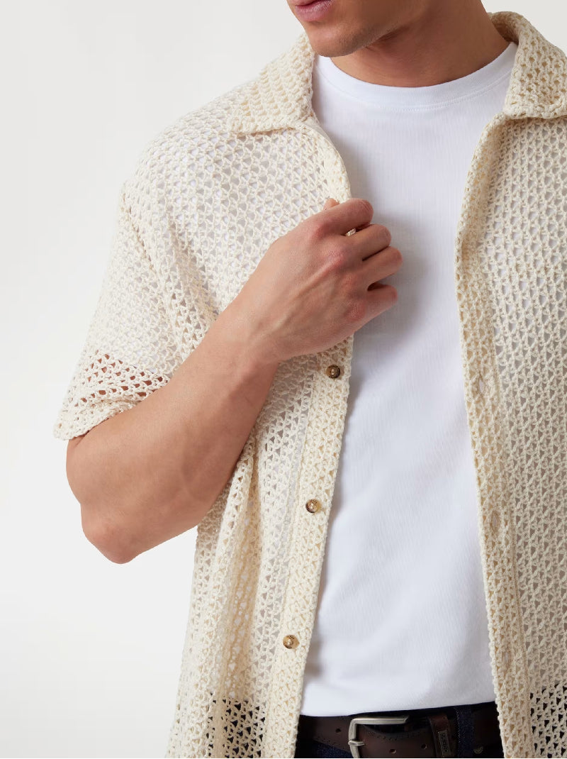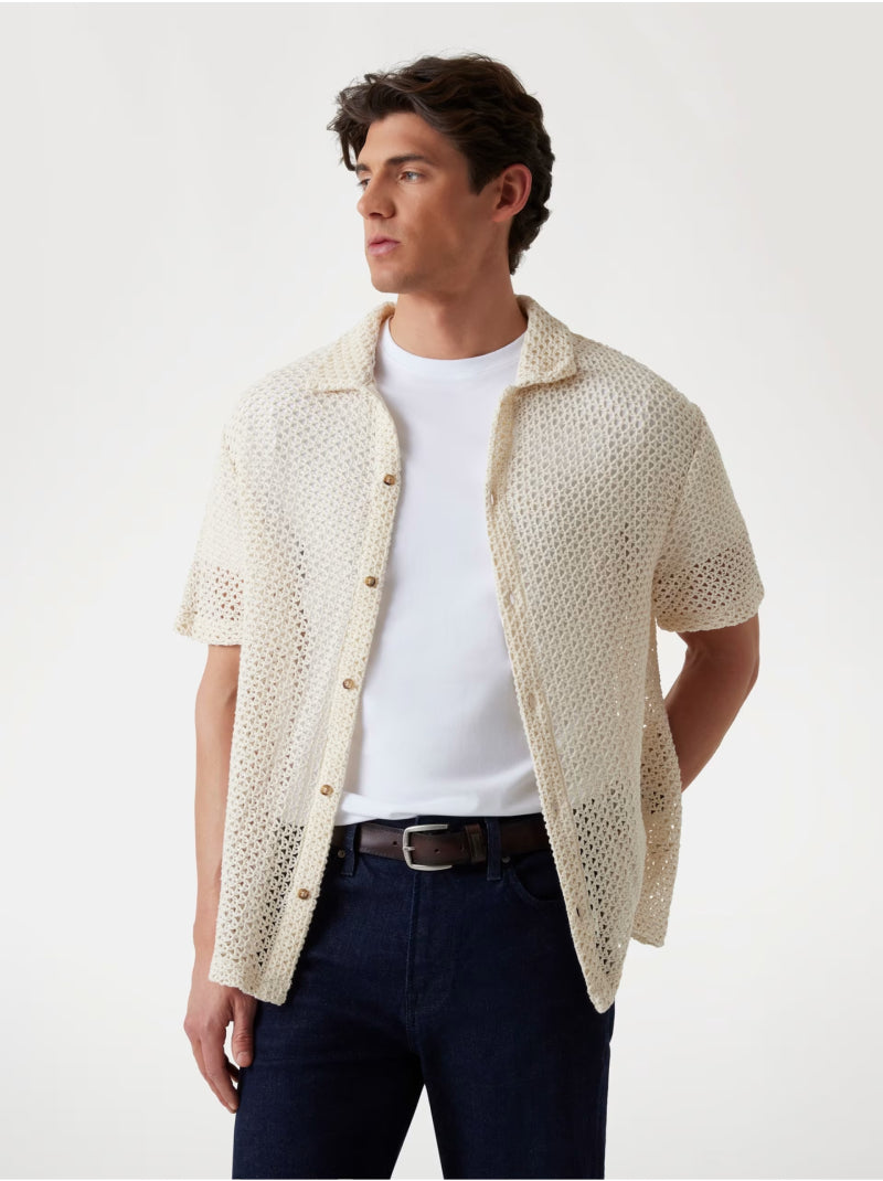 เสื้อเชิ้ตผู้ชาย Openwork-knit shirt
