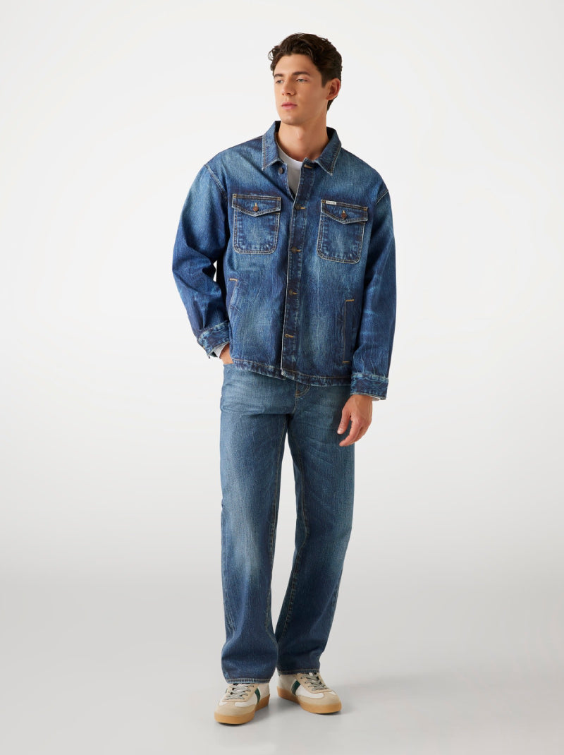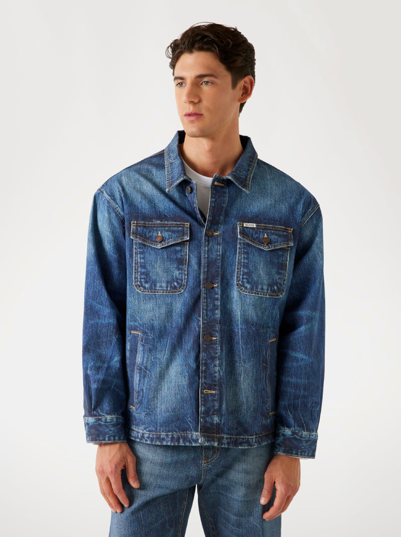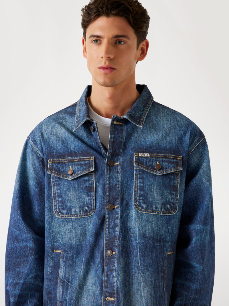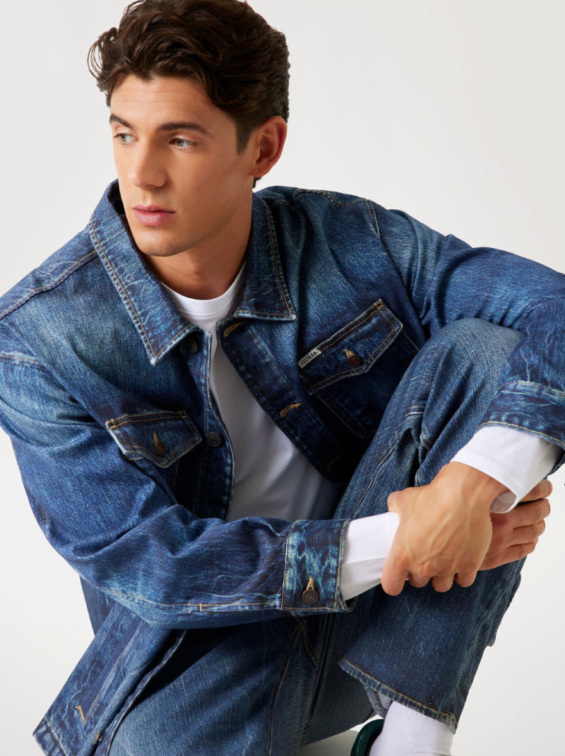 เสื้อแจ็กเก็ตยีนส์พิมพ์ลายสุดเท่ ที่ผสานความทันสมัยเข้ากับสไตล์คลาสสิกอย่างลงตัว ผลิตจากผ้ากาบาร์ดีนผสมคอตตอนยืด ให้สัมผัสนุ่มสบายและยืดหยุ่นได้ดี ดีไซน์คอปกทรงคลาสสิก แขนยาว มาพร้อมกระเป๋าด้านบนแบบฝาพับและกระเป๋าข้างเฉียง เพิ่มฟังก์ชันการใช้งานได้อย่างมีสไตล์ ตกแต่งด้วยกระดุมด้านหน้าเพื่อความเรียบหรู เนื้อผ้าคอตตอนผสมอีลาสเทนช่วยให้เคลื่อนไหวได้อย่างคล่องตัว เหมาะสำหรับลุคสบาย ๆ ที่ยังคงความเนี้ยบทุกโอกาส