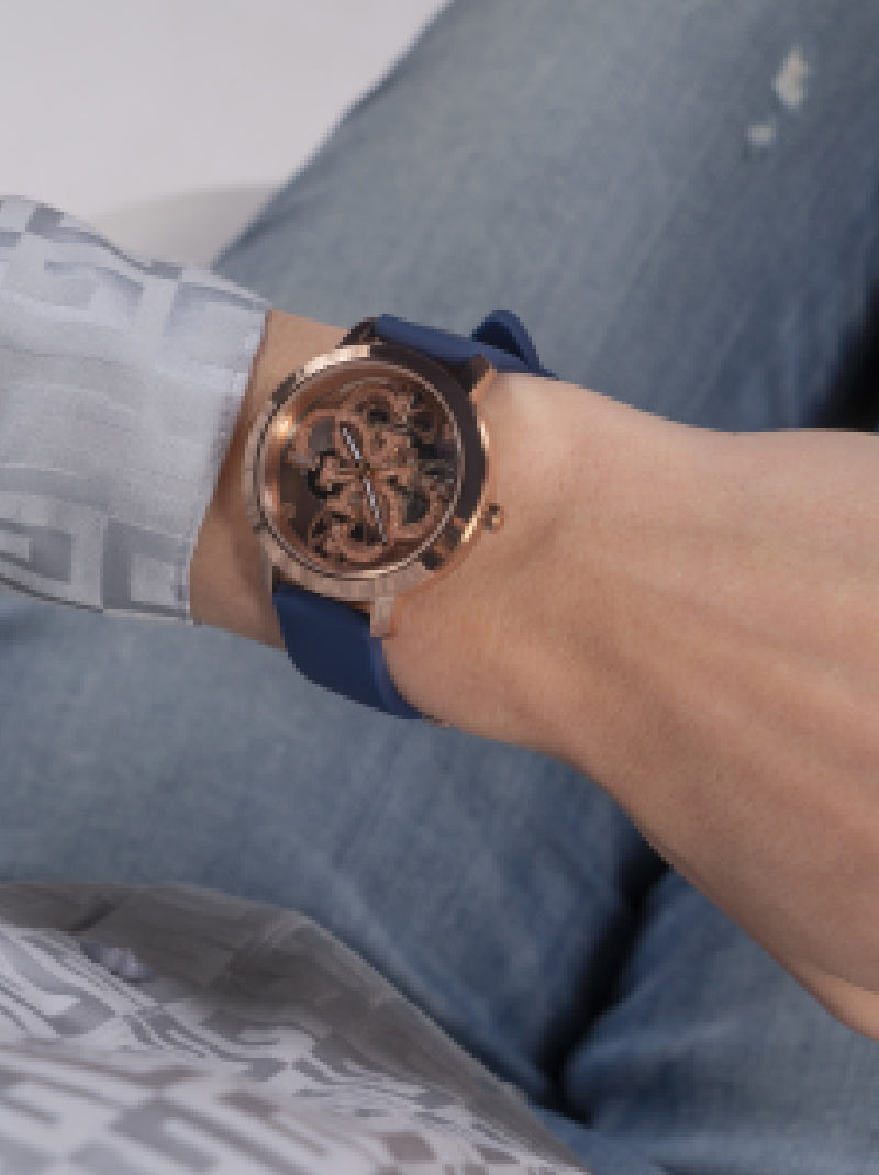 • ตัวเรือนสแตนเลสสีโรสโกลด์
