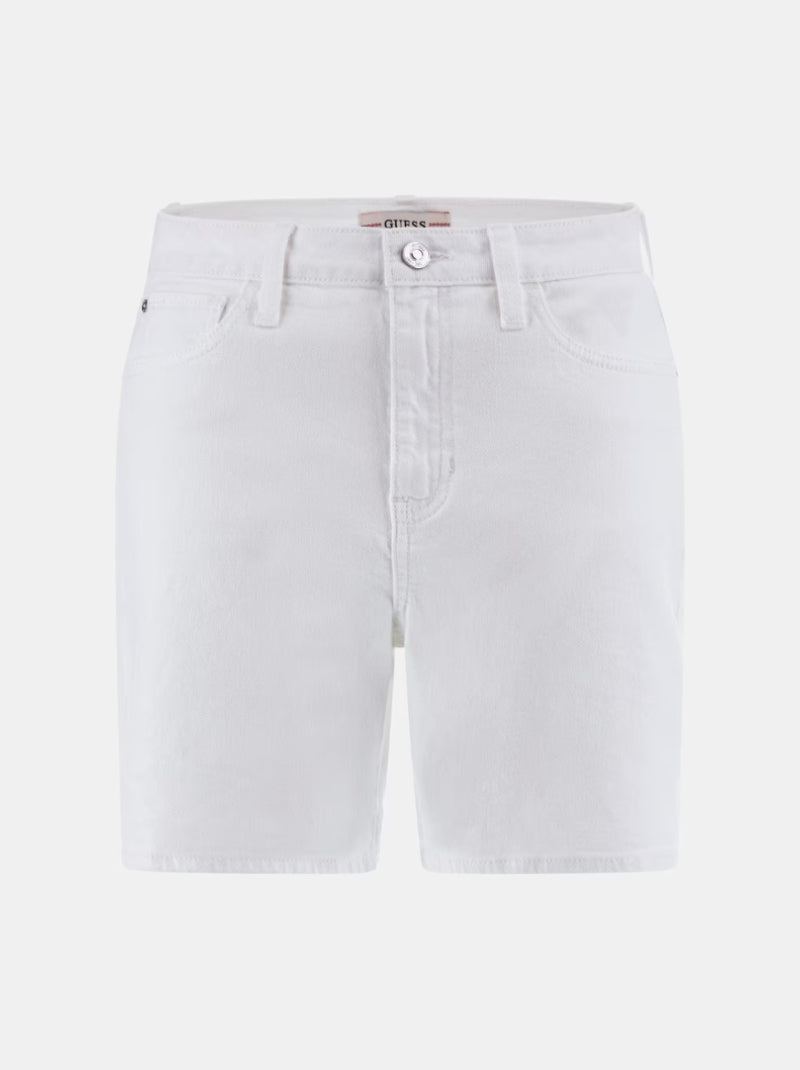 เติมลุคซัมเมอร์ให้เข้ากับสไตล์คุณด้วย กางเกงขาสั้นยีนส์ GUESS Eco รุ่น Stretch Cotton เอวสูงแนบเอวธรรมชาติ ดีไซน์กระเป๋า 5 จุด พร้อมซิปและกระดุมด้านหน้า ให้ลุคคลาสสิกแต่ติดสบาย ความยาวประมาณ 5.5 นิ้ว ให้ความรู้สึกเหมือนลุค pedal ที่ดูเรียบหรู พร้อมชายกากรตัดดิบเล็กน้อยเสริมความเท่ และติดโลโก้สามเหลี่ยมเล็กที่กระเป๋าหลังเพิ่มรายละเอียดโดดเด่นอย่างมีสไตล์