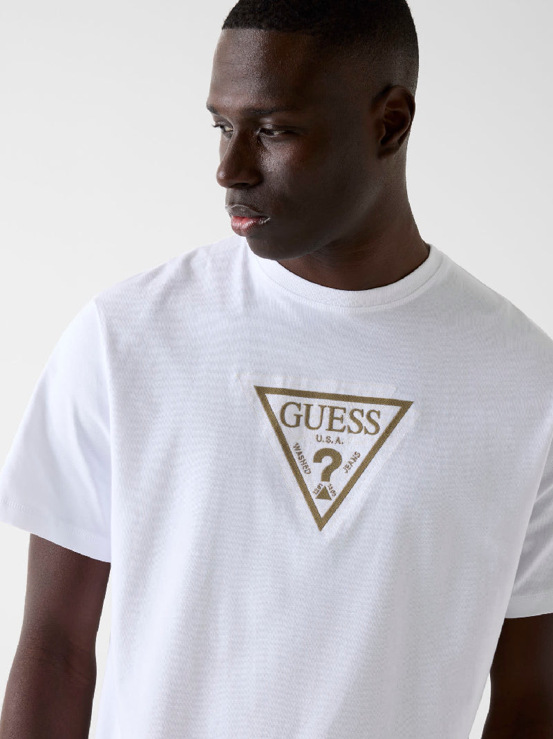 ● ลายสกรีนโลโก้สามเหลี่ยม GUESS สุดคลาสสิกที่หน้าอก